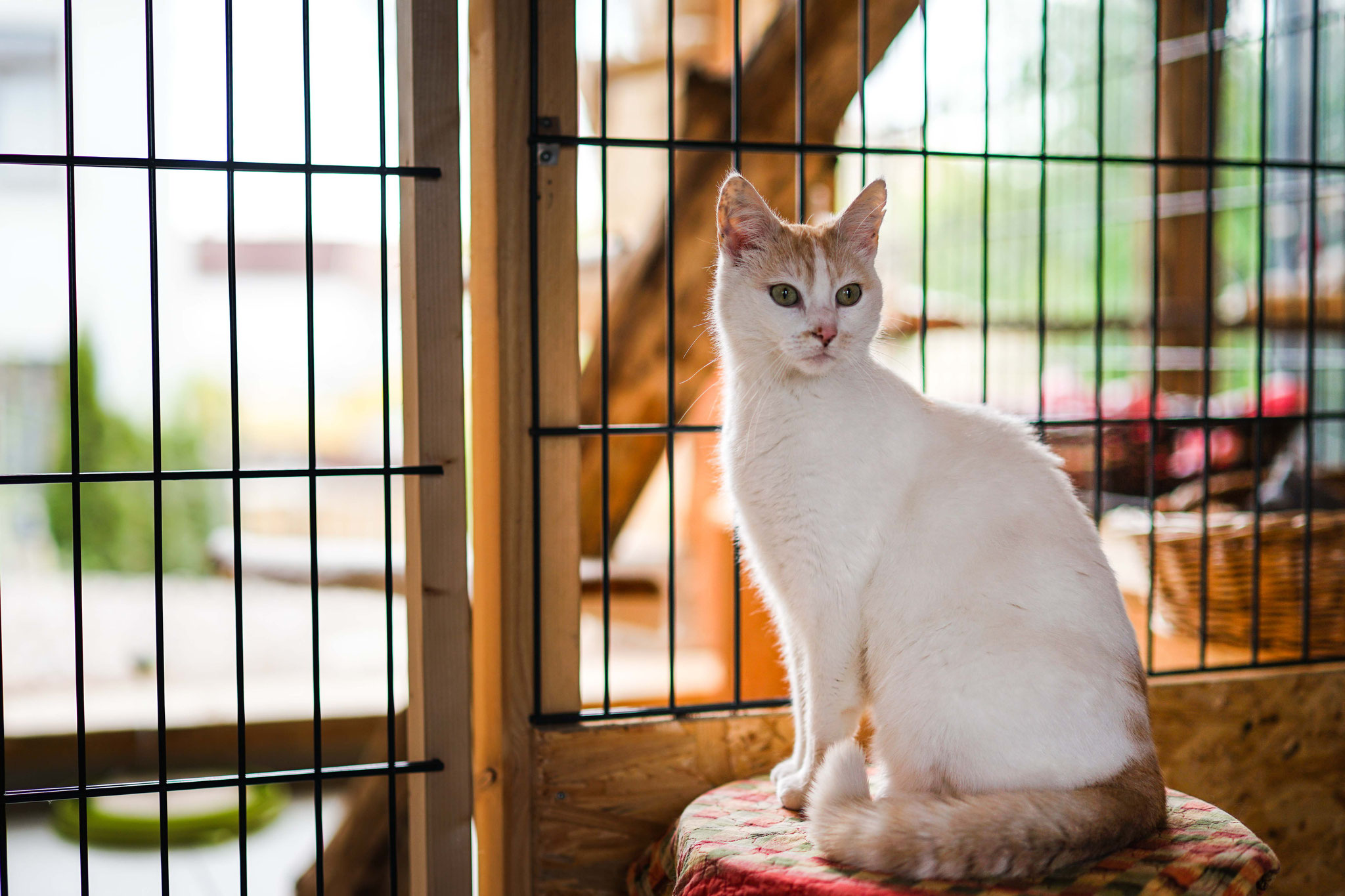 Wir bieten außerdem für unsere Fellnasen mit Behinderung oder Krankheitsbildern wie zum Beispiel Arthrose spezielle Zimmer an, die mit niedrigen Stufen und besonders weichen Gelkissen ausgestattet sind. Auch für ganz junge Gäste mit noch kleinen Köpfchen und Pfötchen haben wir spezielle Kittenzimmer, natürlich mit eigenem Außengehege, wo sich auch die Kleinsten ohne Gefahr sich einzuklemmen oder zu verletzen, aufhalten können. Unser Außengehege gleich im Eingangsbereich erfreut nicht nur die lieben Katzeneltern, sondern gerne toben unsere Gäste und fangen gelegentlich auch Mäuse darin.